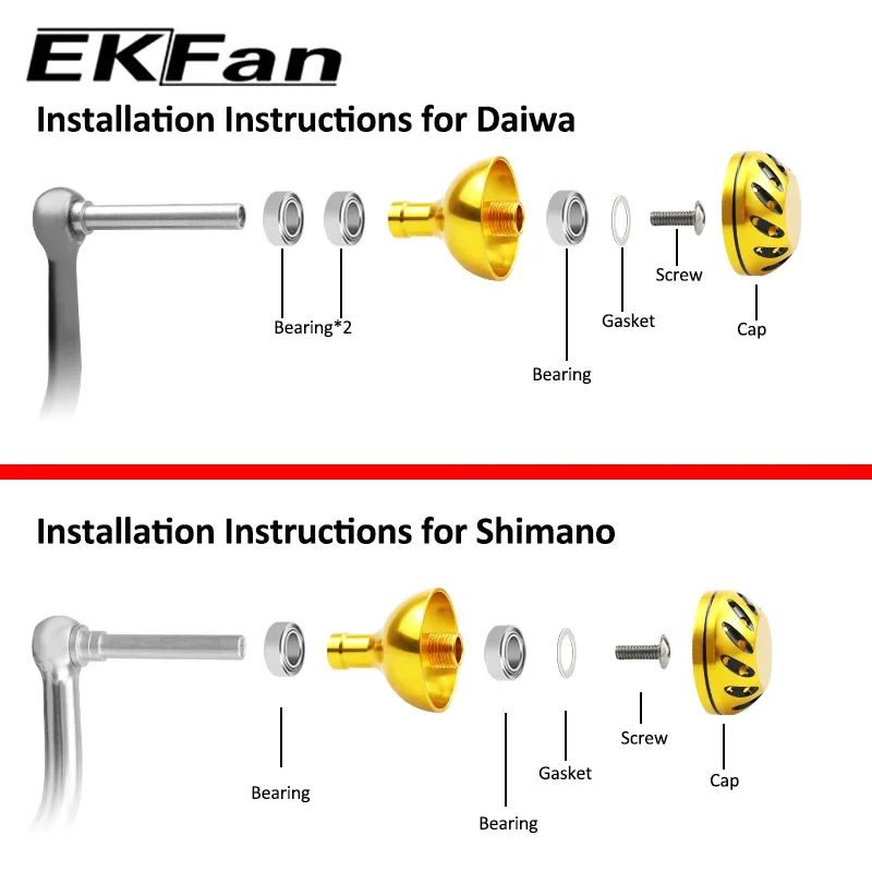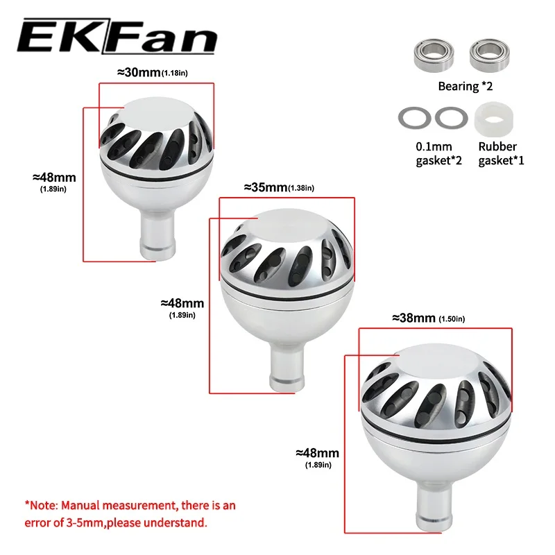 Upgrade your reel with the EKfan alloy metal handle knob, designed to deliver improved grip, durability, and precision for both spinning and baitcasting reels. Available in 30mm, 35mm, and 38mm sizes, this knob is crafted from high-strength alloy for a solid, lightweight feel that enhances control during retrieves and fights. Compatible with 4mm shaft reels, it fits most Daiwa and Shimano models, making it an excellent DIY replacement or customization option. The smooth rotation and ergonomic design provide comfortable handling, reducing fatigue during long sessions on the water. Whether you’re restoring an older reel, upgrading performance, or fine-tuning your setup, the EKfan handle knob offers a sleek, durable, and functional enhancement for any fishing reel.