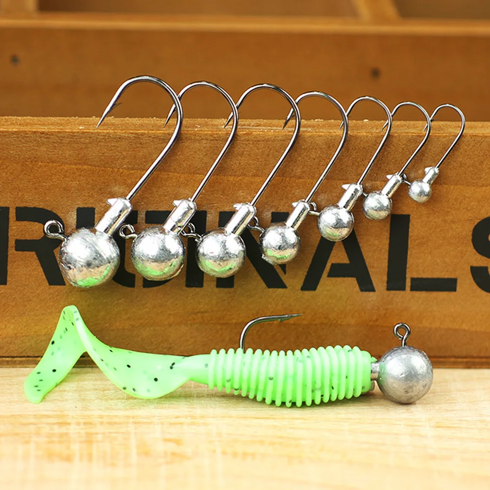 These metal jig head hooks provide reliable performance for rigging soft lures in a variety of fishing situations. Available in 1g, 10g, and 28g weights, they let you easily match your setup to different depths, currents, and target species. The barbed, sharp hook design ensures strong penetration and secure hookups, even with fast or light-biting fish. Each jig head is crafted for durability and balanced swimming action, helping your soft bait move naturally through the water. Their crank-style shank keeps lures firmly in place, preventing slip-offs during casting or retrieval. Ideal for carp, bass, and other freshwater or light saltwater species, these hooks offer versatility for jigging, casting, or bottom bouncing. With rugged construction and dependable performance, they’re a valuable addition to any angler’s tackle kit. Perfect for anglers seeking effective, weighted hooks that maximize lure presentation and strike efficiency.